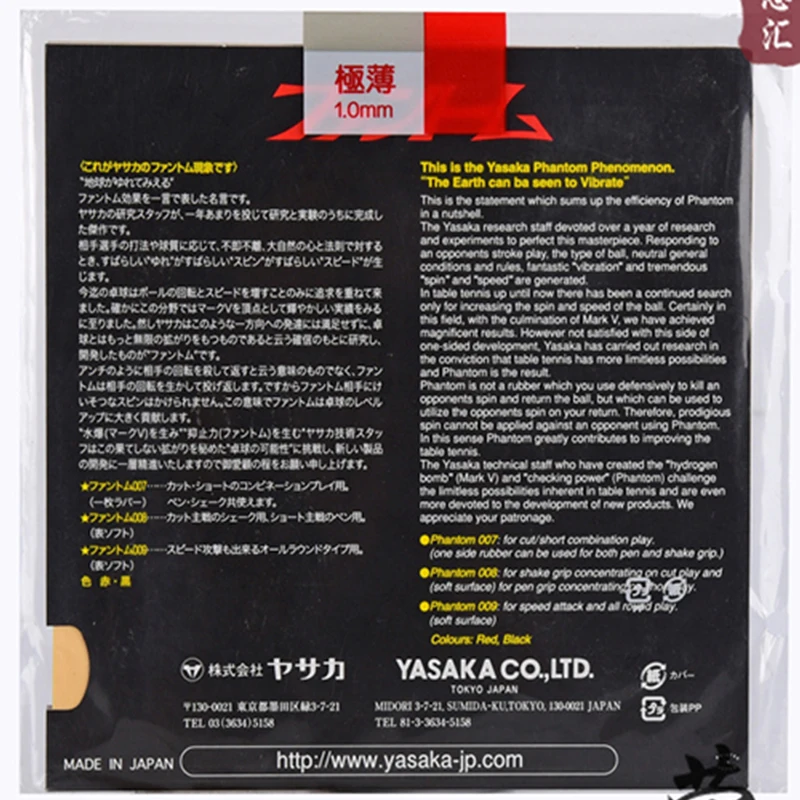 Модель товара: оригинальная Резина yasaka Phantom 009 для настольного тенниса