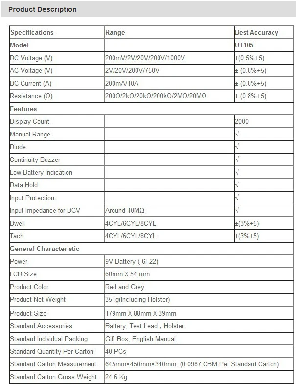 UNI-T UT81B LCD Портативный цифровой мультиметр с USB/...