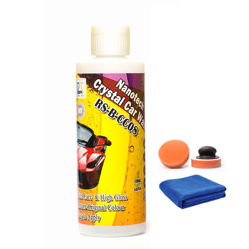 125 мл Nanotech Кристальный автомобильный воск, 1 шт. полотенце из микрофибры, 2 шт. полировальной губки.