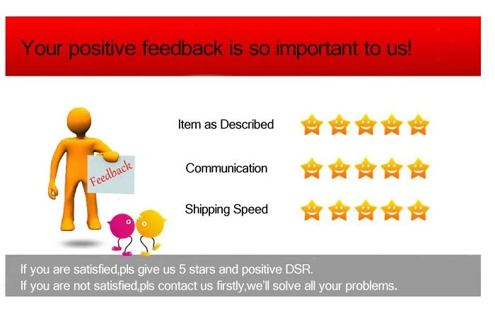 Мы поддерживаем высокие стандарты качества и стремимся к 100% удовлетворенности клиентов! Отзывы покупателей очень важны. Мы просим вас, ПРЕЖДЕ чем оставлять нам нейтральный или отрицательный отзыв, связаться с нами, чтобы мы могли разрешить проблему к общему удовольствию.