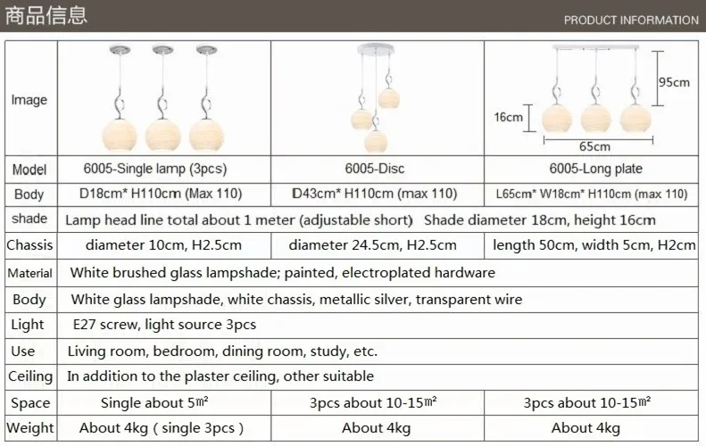 Применение пространства: гостиная, столовая, кабинет, спальня, другое. Тип источника: светодиодный, лампы накаливания, энергосберегающие лампы Размер: один светильник, диаметр 18 см * высота 16 см (длина кабеля 95 см регулируется) Стиль: простой современный
