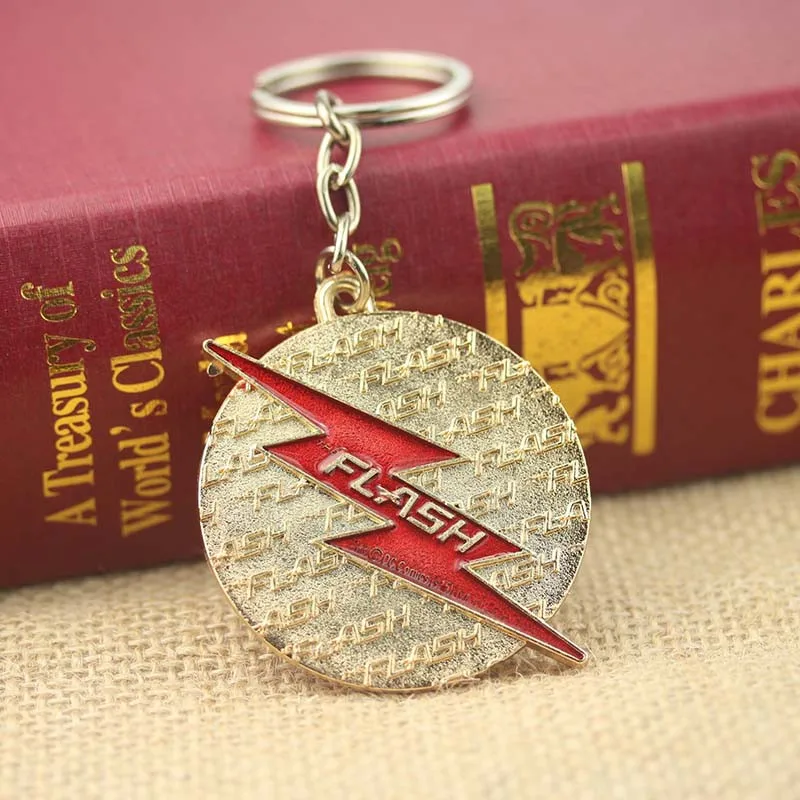Горячая продажа DC Comics Супер герой флэш логотип золотые брелки круглая металлическая подвеска брелок фильм ювелирные изделия для влюбленных Бесплатная доставка