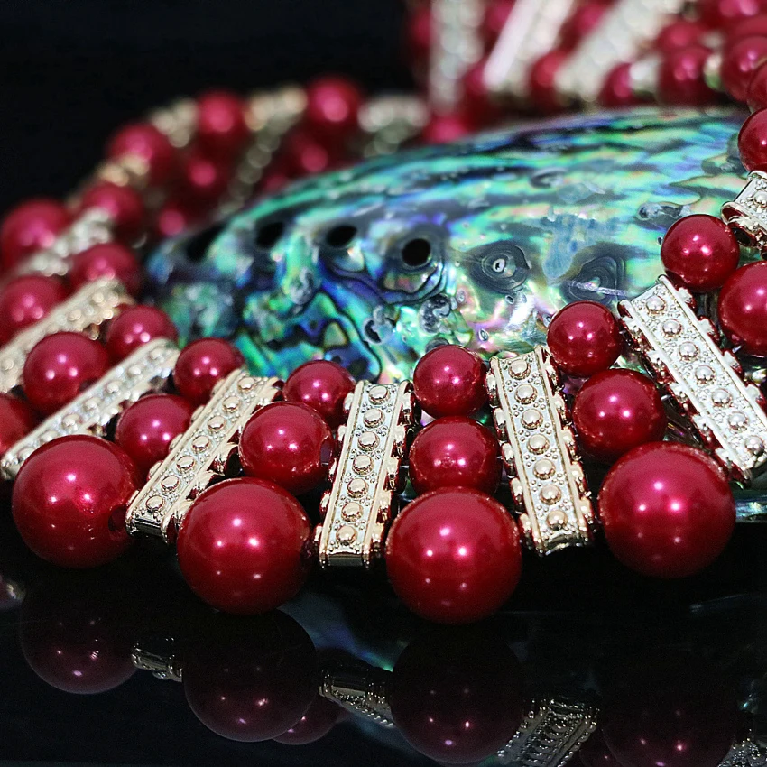 Multicolor Bohemian round shell simulated-pearl multilayer chain necklace earrings set elegant women jewelry B1274