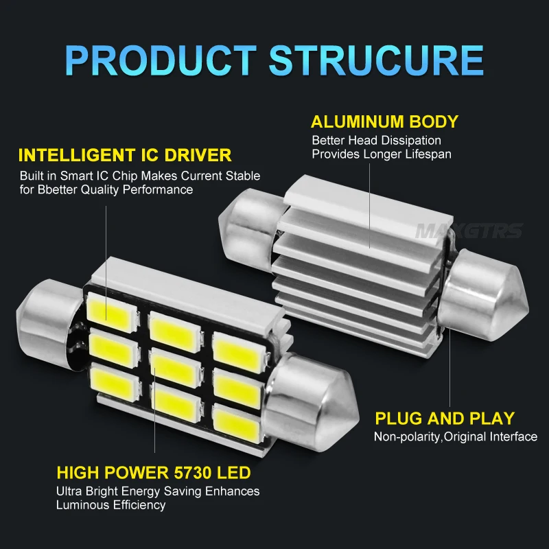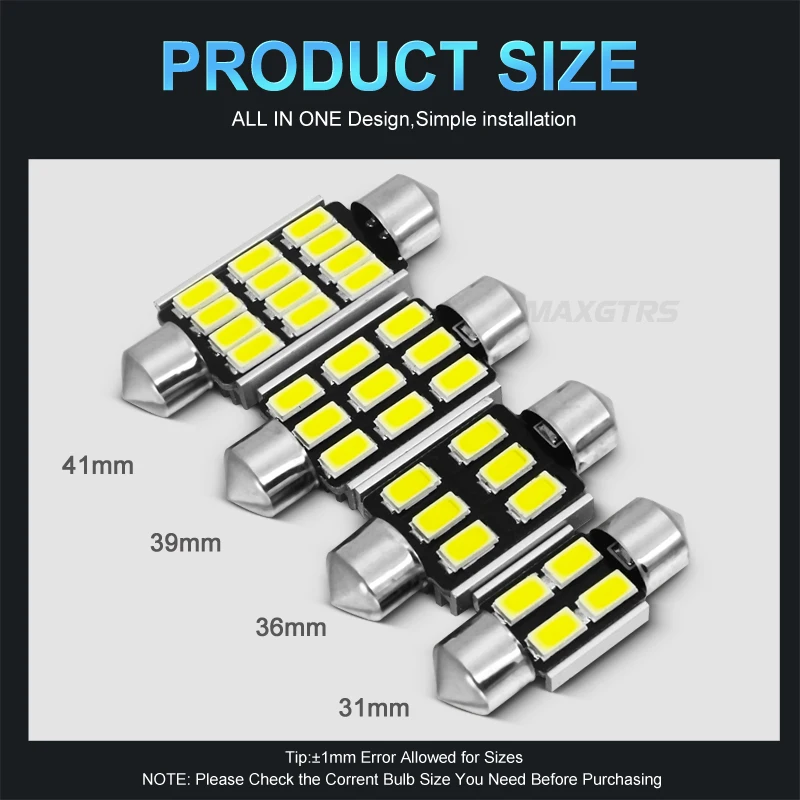 5 шт./лот гирлянда CANBUS 31/36/39/41 мм C5W 5730 LED Smd Светодиодная Белая светодиодная купольная лампа для чтения крыши лампы источник света