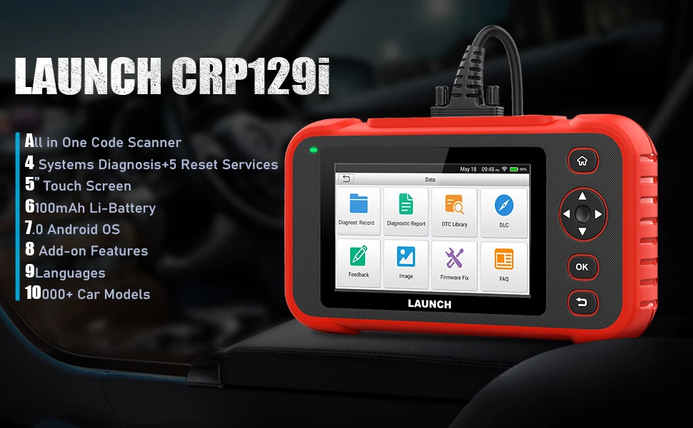 4. Мощный чип: scan tool CRP129i имеет тот же мозг, что и Launch X431 V +, Launch X431 V Pro, Launch X431 Pro Mini. Со всеми функциями (OBD + 4 системы + 5 сброса), поддерживаемые LAUNCH 129i, вы получите самую быструю диагностику.