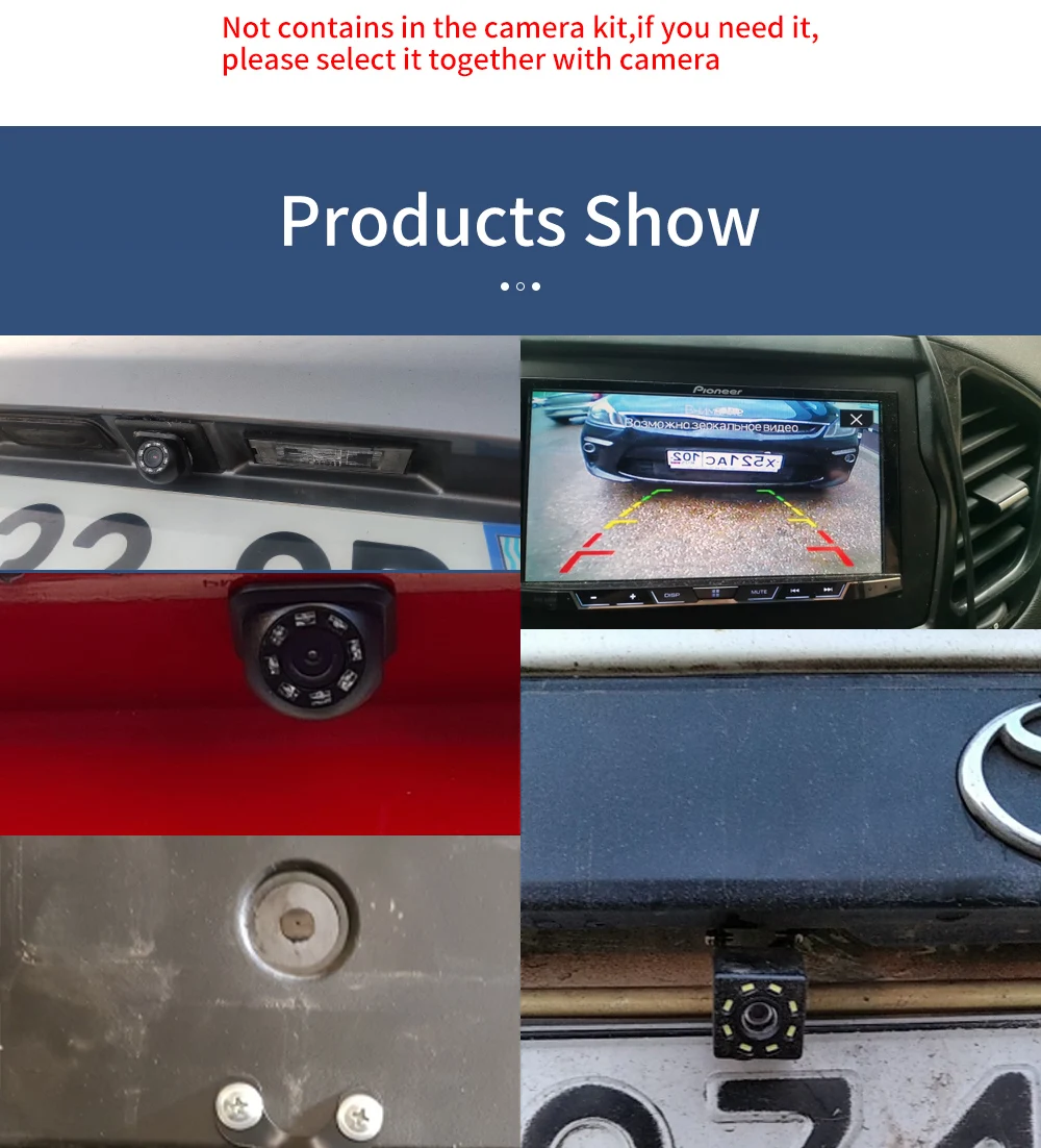 8) видео кабель подключения монитора, кабель питания подключения автомобиля задний светильник питания, Реверсивный, система мониторинга заднего хода автоматически начинает работать, вы можете ясно видеть автомобиль после ситуации