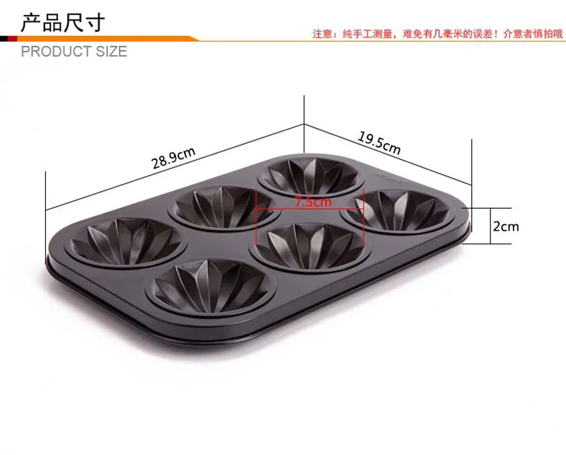 Название продукта: 6 даже антипригарных форм для торта Материал: тяжелая сталь + антипригарное покрытие Размеры: 28.9x19.5x2.5cm Термостойкость: 230 градусов Цельсия Вес: 256 г Преимущества продукта: высокая термостойкость, не легко деформируется, прочный