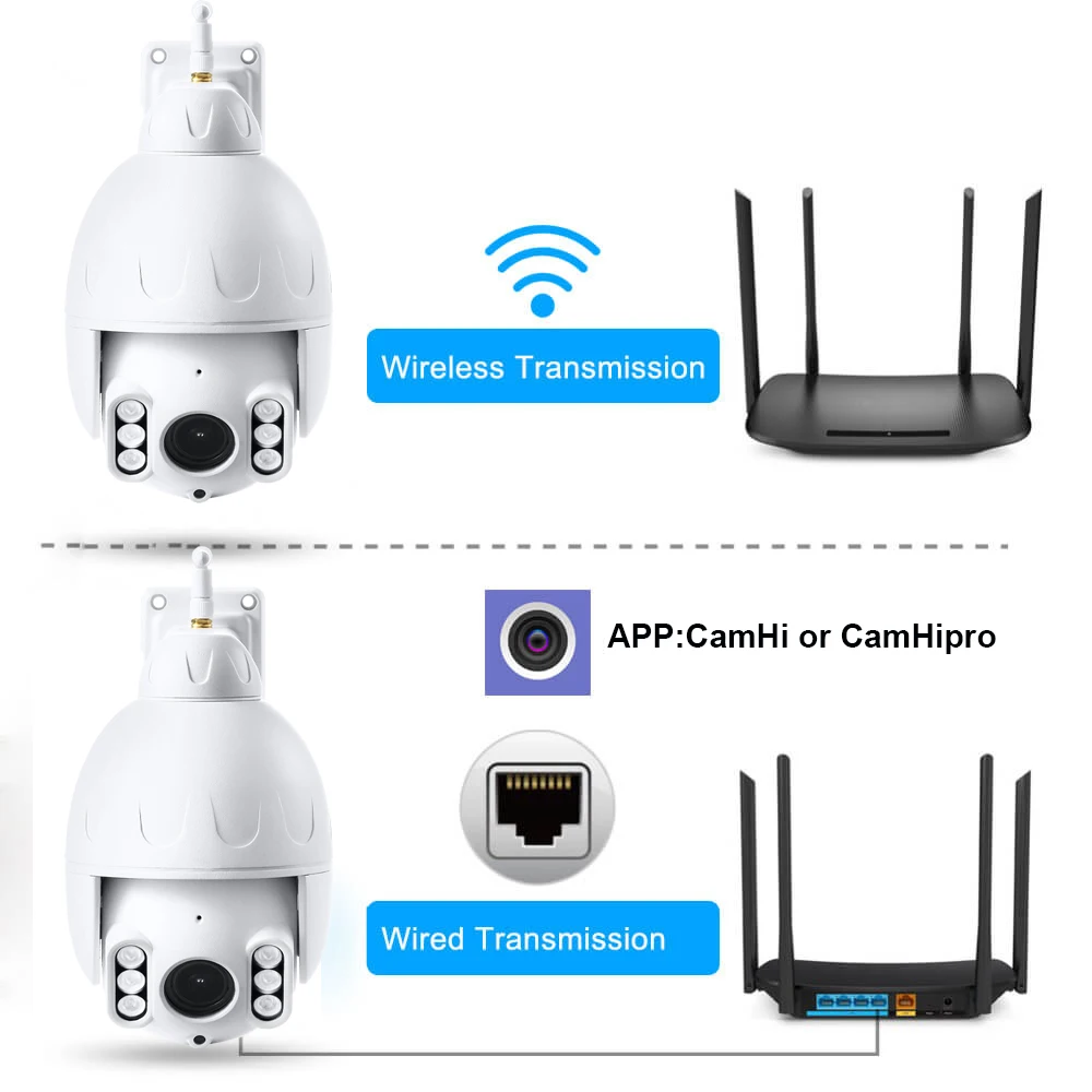 Камера поддерживает беспроводное подключение Wi-Fi и проводное соединение кабеля RJ45 ethernet