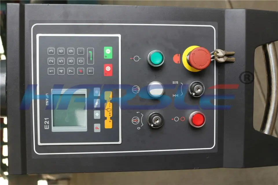 численное система управления принимает электрогидравлических следящих гибочная машина CNC system imported from Italian ESA, немецкий DELEME или Швейцарский CYBELEC, который может достигнуть функции графического программирования для угла изгиба, угол поправки компенсации, автоматический расчет и корректировке гибки давление, автоматический расчет workbench компенсации искажений, затратив длина заготовки, изгиб давление единственным нажатием, открыть расстояние и автоматическое снятие заднего датчика и так далее.