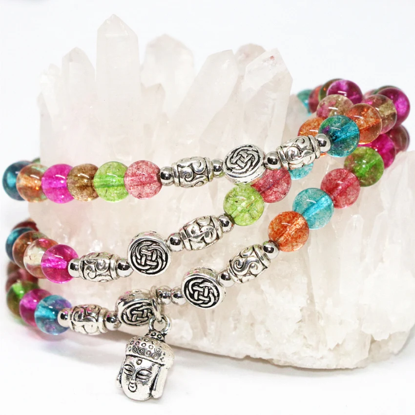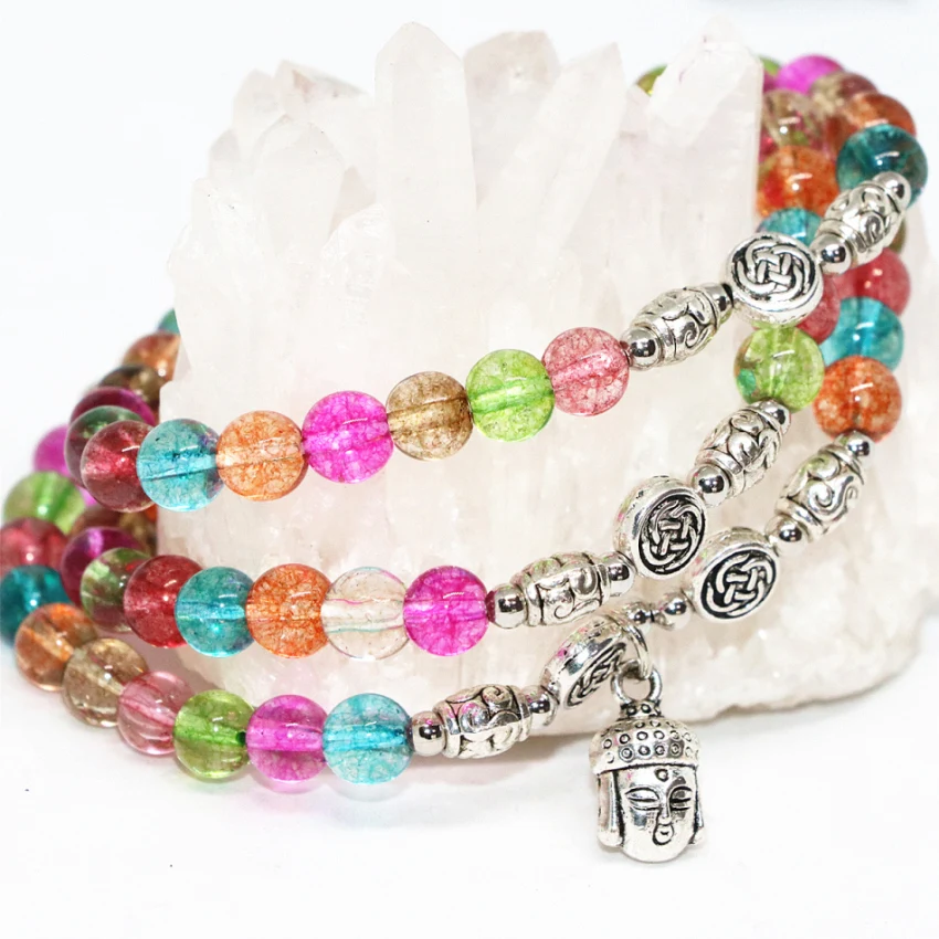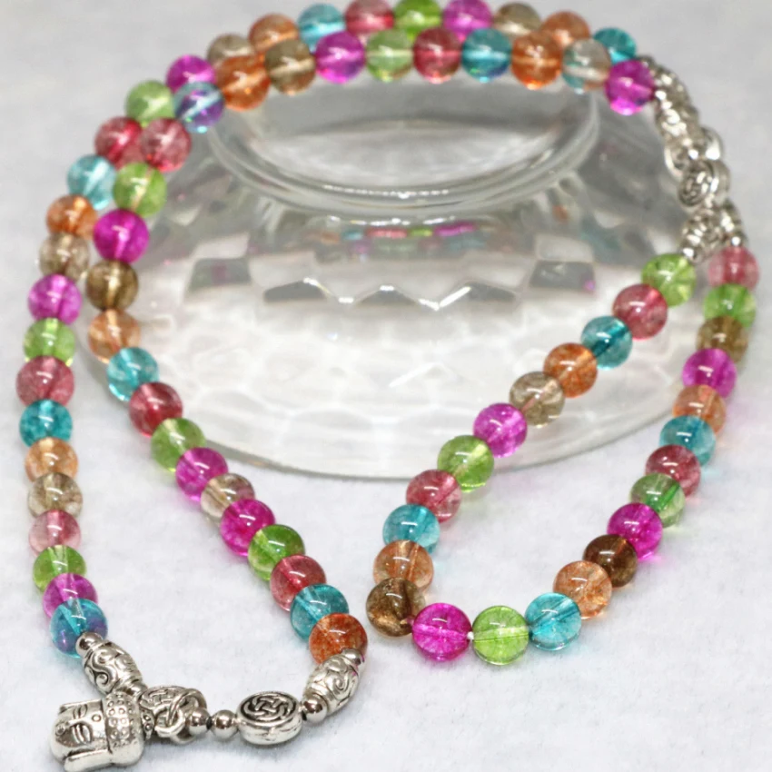 Factory price original design pretty multicolor simulated tourmaline multilayer long elastic bracelets round beads 6mm diy jewelry B2262