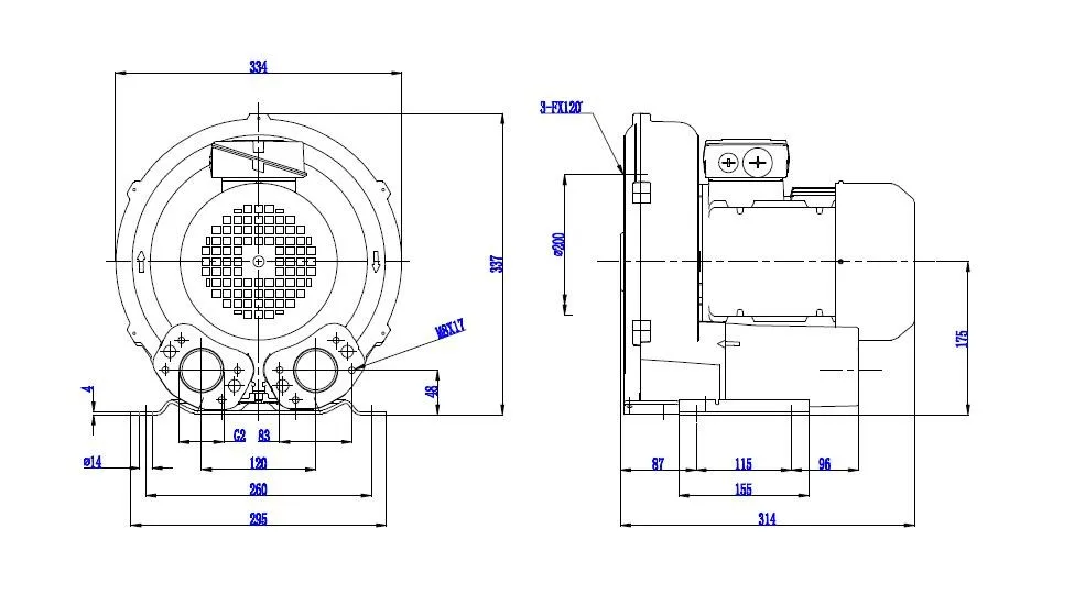 3. Двойное напряжение: воздуходувка может использоваться как для 220/380 в, так и для трехфазного, 110/220 в для однофазного.
