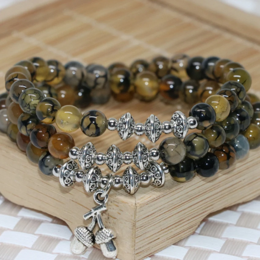 Оригинальный дизайн Винтажный новый модный натуральный желтый Дракон вены круглые каменные бусы 6 мм Многослойные браслеты женские ювелирные изделия B2215