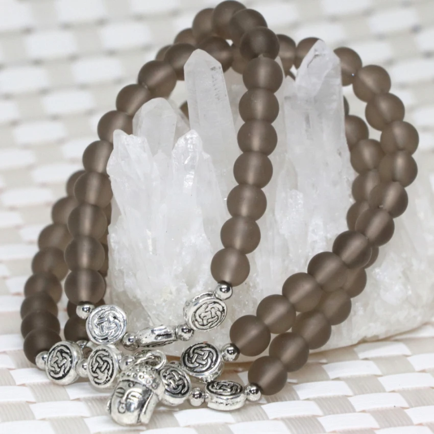 Новая мода Заводская цена высокое качество серый матовый Кристалл 6 мм круглые бусины Уникальные Многослойные браслеты ювелирные изделия B2259