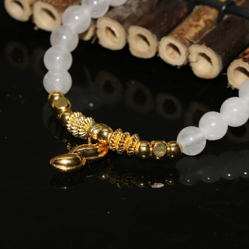 Бесплатная доставка, новые модные бусины из натурального белого нефрита, 6 мм, Круглый браслет, женский Красивый позолоченный аксессуар, ювелирные изделия 7,5 дюйма, B1956