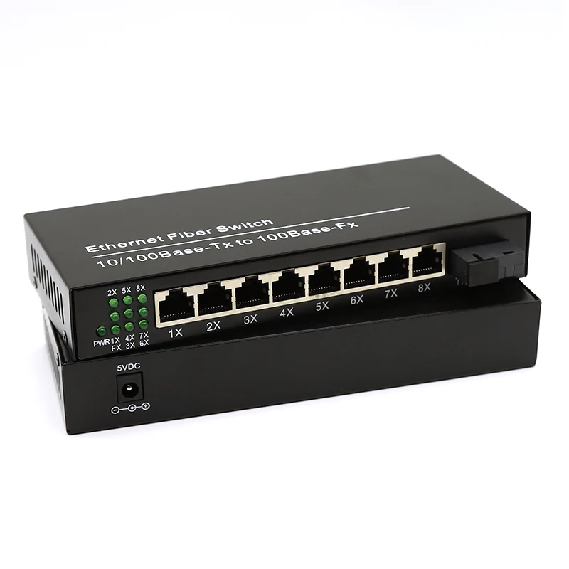 Это своего рода 10/100 Мбит/с адаптивный Быстрый Ethernet волоконный конвертер со встроенным восьмипортовым адаптивным переключателем 10 м/100 Мбит/с, который может осуществлять взаимное преобразование между восемью независимыми 10Base-T/100Base-TX витая пара электрического сигнала и 100Base-FX оптического преобразования сигнала-FX оптический сигнал.Он может увеличить расстояние передачи сети от 100 м над медными проводами до 120 км (однорежимный полнодуплексный режим). Поддерживает два типа сетевого подключения: 10/100Base-TX и 100Base-FX. Благодаря применению технологии переключения и технологии хранения и пересылки, он может осуществлять передачу данных между двумя типами сетевых подключений.Особенности:Адаптивная сеть Ethernet 10 Мбит/с и 100 Мбит/с для удобства обновления сети;Эффективное встроенное коммутационное ядро для реализации управления потоком и уменьшения пакетов трансляции;Предоставление восьми независимых адаптивных портов витой пары 10/100 Мбит/с, для реализации резервного копирования электрических интерфейсов и доступа к нескольким пользователям;Предоставление восьми электрических интерфейсов на основе настройки переключателя VLAN и поддержка подключения пользователей из разных устройств;Поддержка режимов полнодуплексной и полудуплексной передачи и возможность автоматического согласования;Поддержка автоматического скрепления витых портов для удобства отладки и установки системы;Поддержка передачи сверхдлинных пакетов (максимальная длина 1552 байт);Поддержка качества обслуживания (QoS) и обеспечение передачи VoIP пакетов;Поддержка протокола связующего дерева (STP) для формирования избыточной сети;Низкое энергопотребление, низкое тепловыделение и возможность стабильной работы в течение длительного периода времени;Поддержка одного режима и одного волокна, расширяя требования пользователей;Характеристики:Параметр