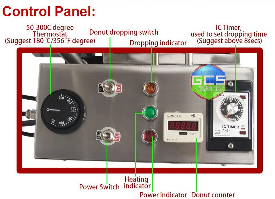 Parameters: Model: T101U ( Electronic control) Discription: Auto Donut Machine Size: 1000X360X650mm Bowl Volume: 6L Mould Diameter:25mm, 35mm, 45mm Donut Size:3-5cm, 5-7cm, 7-10cm Output: 450-600PCS/Hr Voltage:110V-220V Power:3000W N.W.: 26.5KGS G.W.: 40KGS