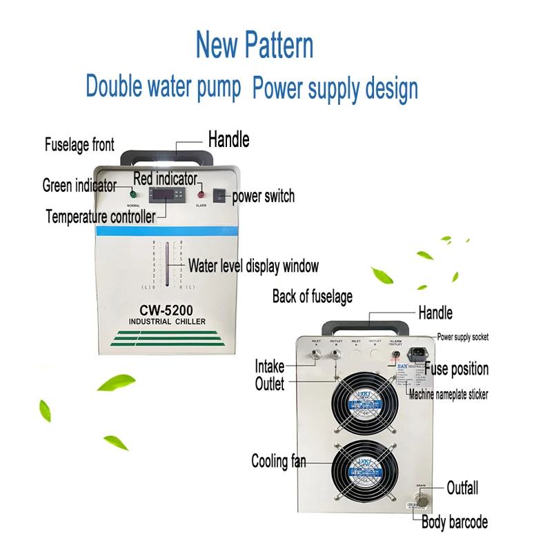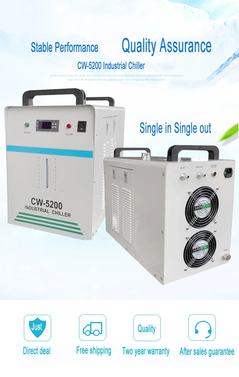 CW-5200AK: применяется для крутого одиночного лазерного диода 50 Вт-75 Вт, одного шпинделя с ЧПУ 8 кВт или сварочного оборудования;