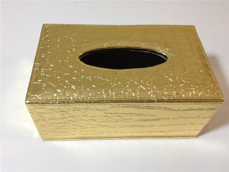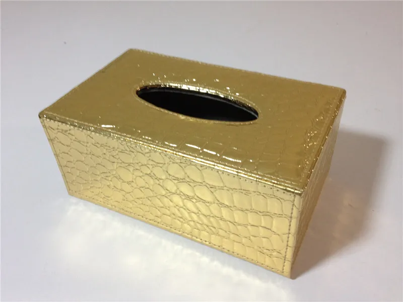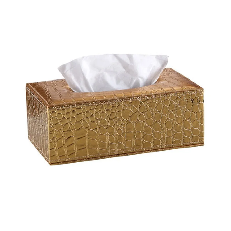 Золотая крокодиловая зернистая из искусственной кожи большая коробка для салфеток, поднос для салфеток, Настольная коробка