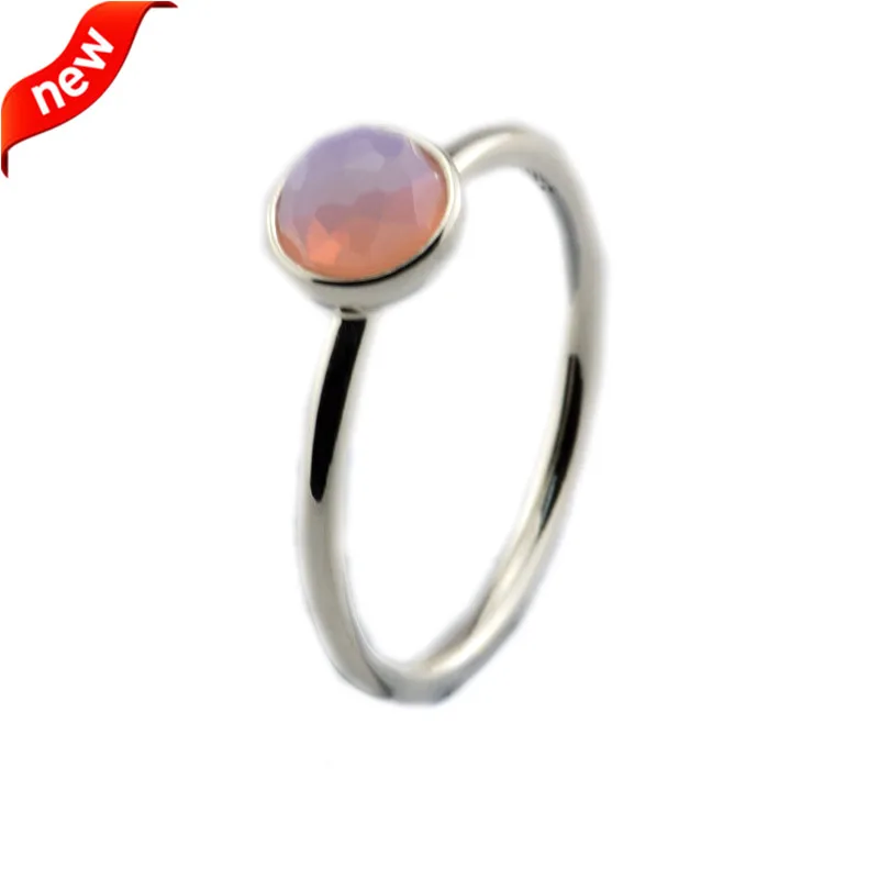Октябрь кольца с каплями с опалесцентным розовым кристаллом 100% 925 пробы серебряные ювелирные изделия Бесплатная доставка