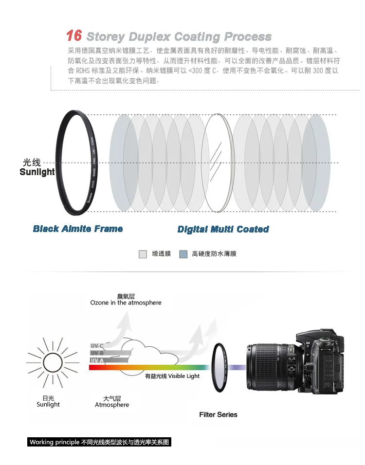 Высококачественные фильтры изготовлены из алюминиевого сплава и высококачественных оптических материалов.
