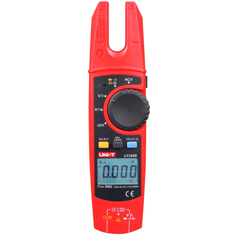 UT256B является AC/DC высокой надежной, безопасной истинной RMS Вилка метр. Его уникальный дизайн позволяет потребителям измерять переменный/постоянный ток, просто перемещая интересующий провод внутри отверстия «fork'» за маркировкой. Без механических деталей, этот счетчик не рисует от любого типа механического выхода из строя. Полная защита от перегрузки ut256b и уникальный внешний вид делают его практичным измерителем для любого измерения тока до 200 А или напряжения до 1000 В (750 В переменного тока).