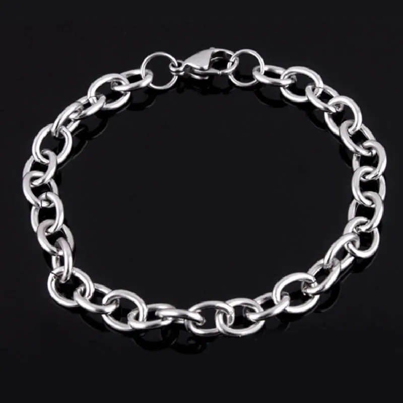 Quality Stainless Steel Charm Bracelet Jewelry For Man 7mm Width High Polished Silver Color Women Bracelets Link Chain Bracelets