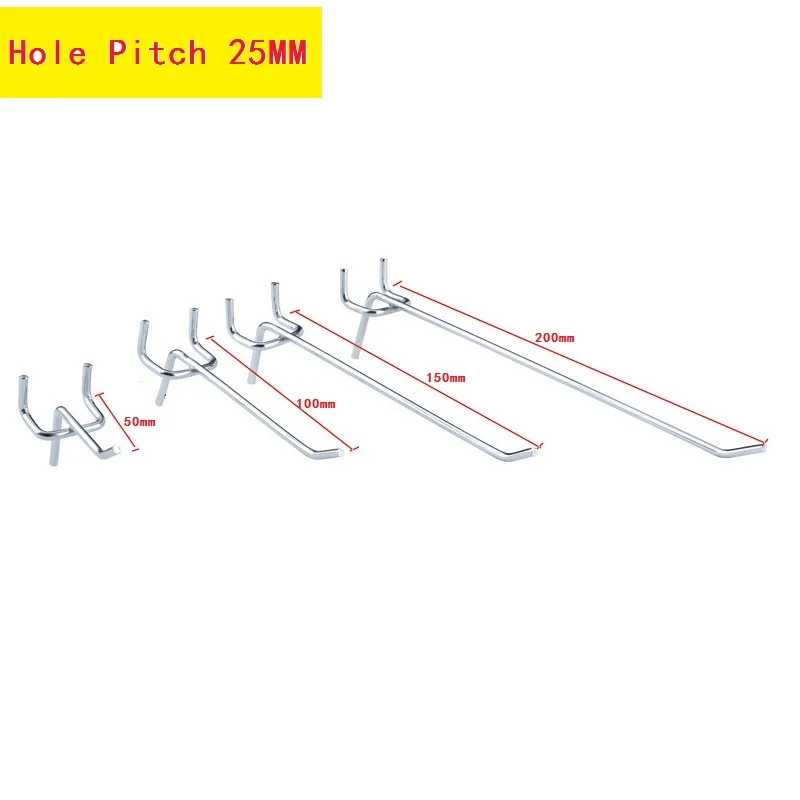 50/100/150/200 мм Длина металлическая хромированная Pegboard Крючки для хранения данных вешалка с фокусным расстоянием 25 мм расстояние между отверстиями Дисплей крючки Крючки для супермаркета