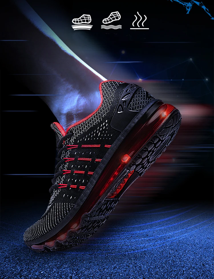В соответствии с асимметричной структурой стопы, наклонный язык может дать воздуху течь вдоль вашей ноги, дышащий и рассеивать тепло. Двухслойная дышащая сетка; Эластичная и воздухопроницаемая, устойчивая и эластичная