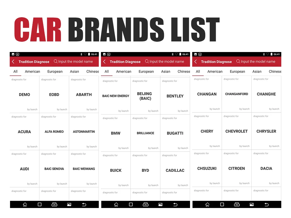 Япония: DAIHATSU, HONDA, Acura, JPISUZU, ISUZU, TLISUZU, MAZDA, MITSUBISHI, NISSAN, SUBARU, INFINITI, NISSAN GTR, SUBARU, SUZUKI, TOYOTA, SCION, LEXUS Китай (материк): BAIC, BEIJING, CHANGAN, CHANGCHENG, CHANGHE, DFXK, FLYER,BYD, FUTIAN,FOTON, HAFEI, HAOQING, GEELY, HUACHEN, JACTY, JIANGHUAI, JIAO, GONOW, JINLONG, JOYLONG, LIFAN, LIUWEl-TY, LUXGEN, QIRUl-TY,CHERY, TRUMPCHI (GAC), WEILi, XILI,FAW TIANJIN, XINKAI, ZHONGSHUN, ZHONGTAI,ZOTYE, ZHONGXING, SPARK-TY, HMADA, SAICMG, QOROS, ISUZU,JMC, CHANGANFORD, DFHONDA, GZHONDA, DFNISSAN, DF PEUGEOT, TJ TOYOTA, YQ MAZDA, CHSUZUKI, FUKANG, HC BMW, NJ FIAT, XIAOKANG DONGFENG Европа: BENZ, AUDI, BENZ, MAYBACH, BMW, BUGATTI, CITROEN, FERRARI, FIAT, JAGUAR, LANDROVER, MASERATI, OPEL, PEUGEOT, PORSCHE, RENAULT, ROVER, SAAB, SEAT, SKODA, SMART, SPRINTER, VOLVO, VW, LANCIA, DACIA, LAMBORGHINI, EUROFORD, BENTLEY, ROLLS-ROYCE, MINI, VAUXHALL, ABARTH, ALFA ROMEO Бразилия: BXFIAT, BXGM Индии: Махиндра, марути, ТАТА Малайзия: PERODUA, протон Австралия: Ауст FORD, Холден Корея: DAEWOO, HYUNDAI, KIA, SAMSUNG, SSANGYONG Иран: MVM Украина: ЗАЗ Америка: FORD, LINCOLN, GM, BUICK, CADILLAC, CHEVROLET, HUMMER, CHRYSLER, DODGE, JEEP Россия: Газ, Иж, паз, сеаз, УАЗ, ВАЗ Американские автомобили Buick; Cadillac; Chevrolet; Chrysler; Dodge; Ford; GM; Hummer; Jeep; Lincoln; (Бразилия) BX-Fiat; BX-GM Европейские автомобили: Abarth; Alfa Romeo; Audi; Bentley; Benz; BMW; Bugatti; Citroen; Dacia; EU-Ford; Ferrari; Fiat; Jaguar; Lamborghini; Lancia; LandRover; Maserati; Maybach; mini; Opel; Peugeot; Porsche; Renault; Rolls-Royce; Rover; Saab; Seat; Skoda; Smart; Спринтер; Vauxhall; Volvo; VW; (Украина) ЗАЗ; (Россия) газ; ИЖ; Паз; Сеаз; УАЗ; ВАЗ Азиатских автомобилей (Япония) Acura; Daihatsu; Honda; Infiniti; Isuzu; Jpisuzu; Lexus; Mazda; Mitsubishi; Nissan GTR; Scion; Subaru; Suzuki; Tlisuzu; Toyota; (Китай) Baic; Beijing; Changan-Ford; Changcheng; Changhe; Chsuzuki; DF Peugeot; DF Honda; DF Nissan; DF XK; Flyer,BYD; Fukang; Futian,Foton; Geely; Gonow; GZ Honda; Hafei; Haoqing; HC BMW; Hmada; Huachen; Isuzu, Isuzu JMC; Jacty; Jianghuai; Jiao; Jinlong; Joylong; Lifan; Liuwel-TY; Luxgen; NJ Fiat; Qirul-TY,chery; Qoros; Saicmg; Spark-TY; TJ Toyota; Trumpchi GAC; Weili; Xiaokang Dongfeng; Xili,Faw Tianjin; Xinkai; YQ Mazda; Zhongshun; Zhongtai,Zotye; Zhongxing; (Корея) Daewoo; Hyundai; KIA; Samsung; Ssangyong; (Индия) Mahindra; Maruti; Tata; (Малайзия) Perodua; Proton; (IRAN) MVM Австралийские автомобили Au-Ford; Holden