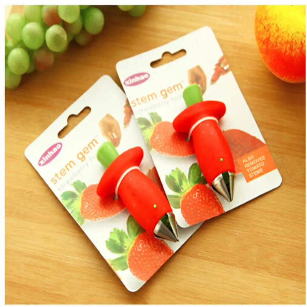 1. Одной рукой нужно держать фрукты. 2. Другая рука должна держать корпус и нажимать нижний механизм. 3. Отпустите дно и снимите стебель с плодов. Посылка включает в себя: 1 клубничный Халлер