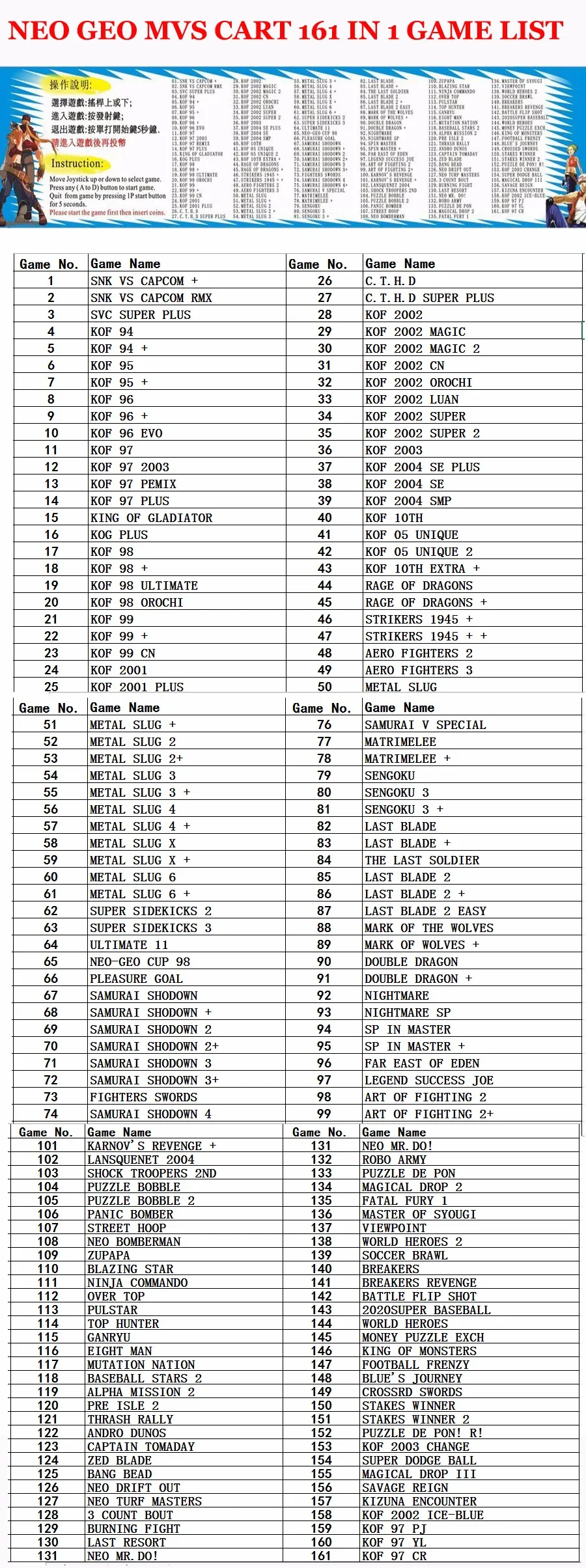 Игровой картридж 161 в 1 работает с консолью, neo geo кассета, тележка 161 в 1 подходит для материнской платы с 1 слотом, содержит 161 классических боевых игр, гораздо быстрее, стабильно и надежно.