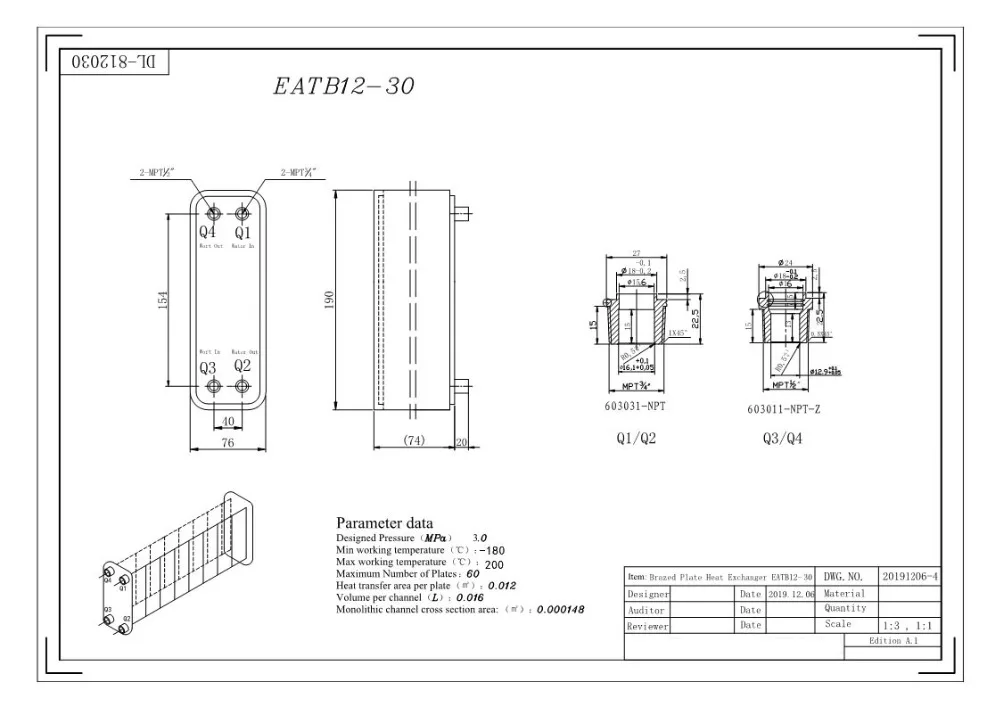 Площадь теплопередачи/пластина: 0.012m2(0.14ft2)