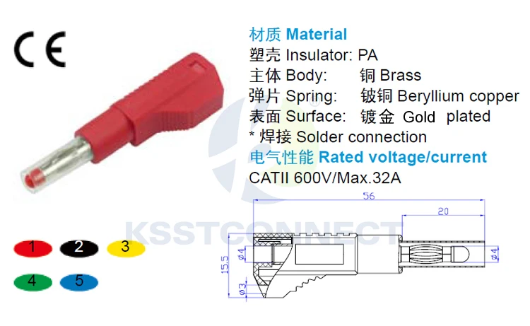 Тест безопасности свинца с 4 мм штабелируемым штекером на обоих концах.