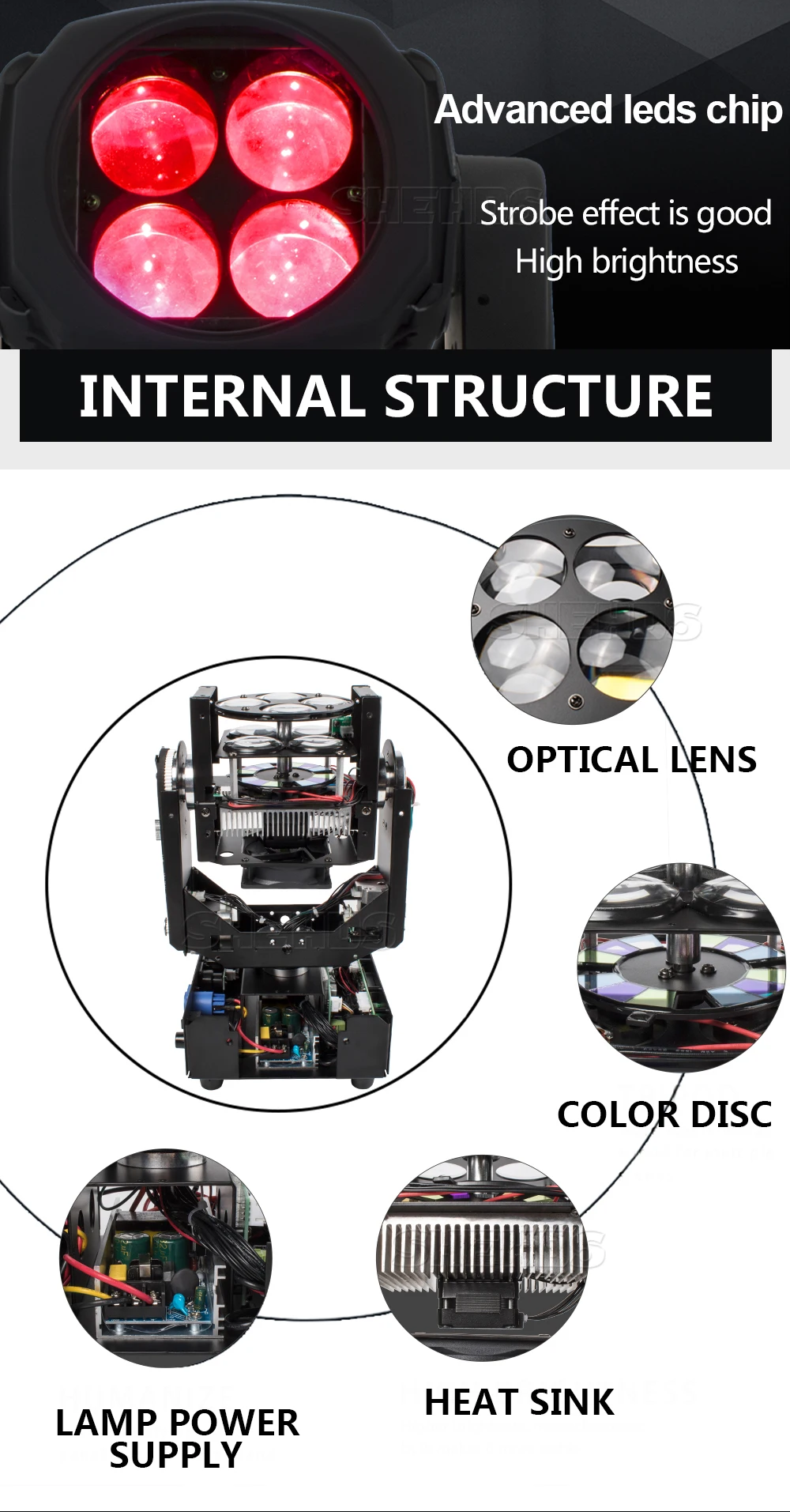 * Operational modes: DMX512,Auto Run,Sound action,Strobe,Stand Alone and Master/Slave,With Rich Advanced Built-in Programs