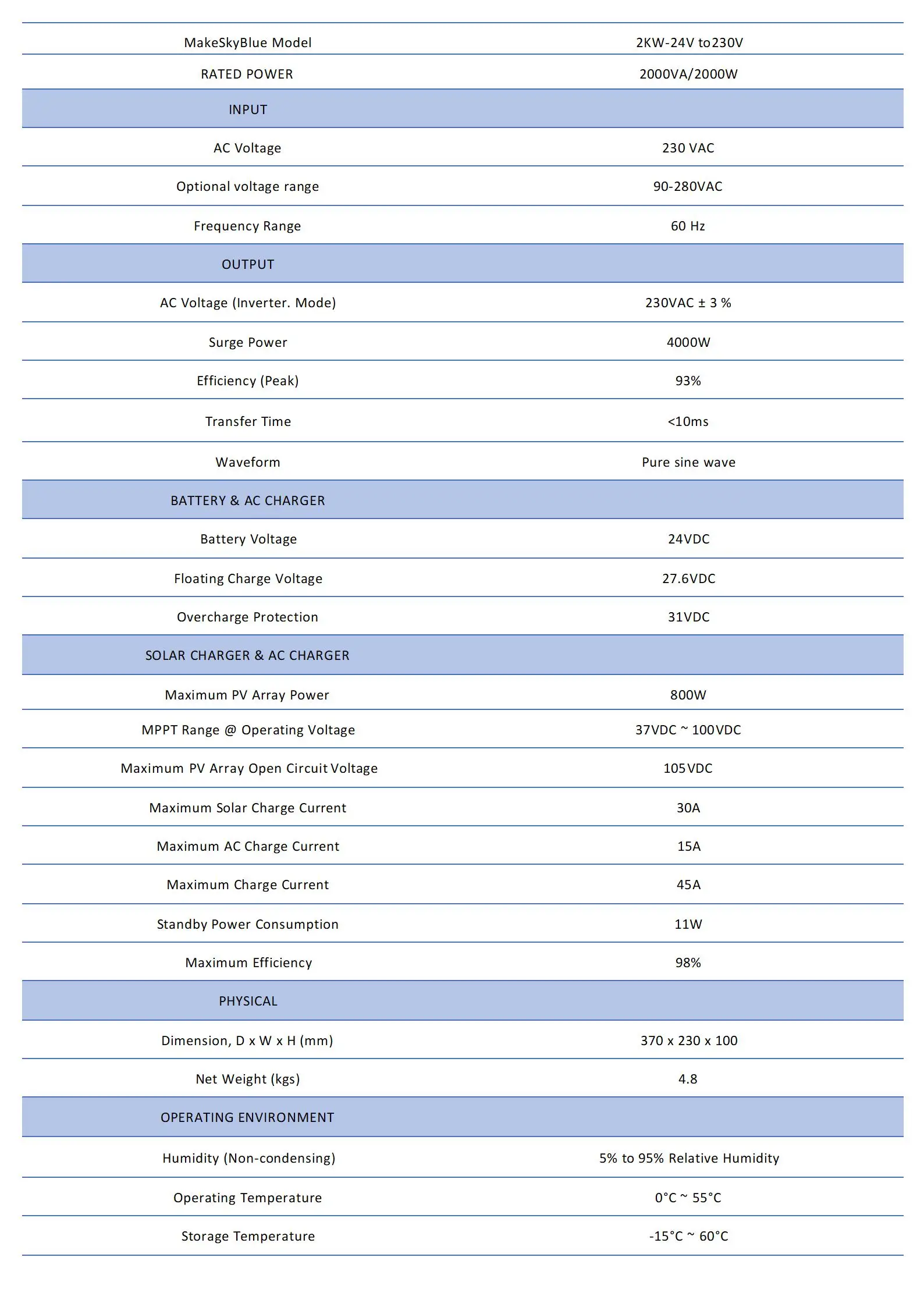 2KVA 1600W MPPT Гибридный солнечный инвертор 24V DC до 230V AC 30A MPPT зарядное устройство