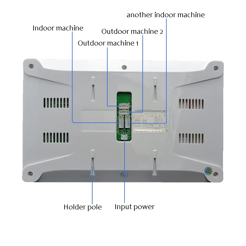 Спецификация внутреннего блока: 1. Размер экрана: 7 дюймов (дисплей 16:9) 2. Цифровой разрешение: 800*480 пикселей 3. Угол обзора: вверх 50 градусов, вниз 70 градусов, влево или вправо 70 градусов 4. Яркость: 200 кд/кв. М 5. Мелодия звонка: аккордированный полифонический рингтон 6. Чувствительность: 56 дБ 7. Сигнальная система: PAL 8. Входное напряжение: AC100-240V 9. Общее потребление поер: 6 Вт макс (400мА) 10. Стенд poer compupbation: 1,1 W max 11. Спецификация адаптера питания: 15 В постоянного тока 12. Задержка в режиме разговора: 120S 13. Задержка отслеживания времени: 40S 14. Эффективное расстояние: 200 м (4.0.75 кв. М) 15. Рабочая температура: от-20 до 60 градусов 16. Относительная влажность: от 10% до 90% 17. Метод установки внутреннего блока: настенный тип