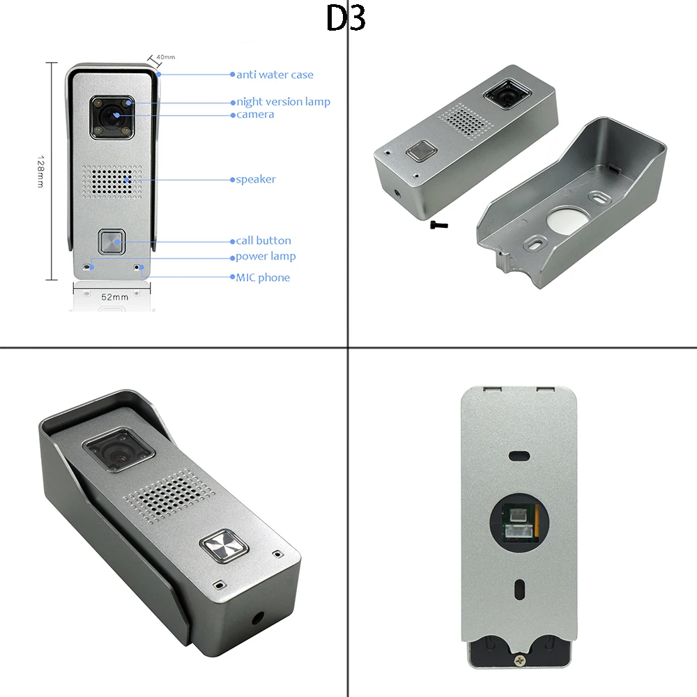 Спецификация наружного блока: 1. Дальность освещения инфракрасной лампы: около 4 метров 2. Управление коэффициентом усиления: Авто 3. Разрешение: 800 линий 4. Время разговора: 120S позже автоматически выключается 5. Расстояние передачи изображения: максимум 200 метров 6. Угол обзора: 92 градусов 7. КВт: 2 Вт макс. 8. Мощность: 15 В постоянного тока 9.Camea: высокое разрешение и цветная CMOS 10. Наружная инфракрасная функция ночного видения: 10 люкс инфракрасный 11. Наружная установка: встроенный или настенный тип