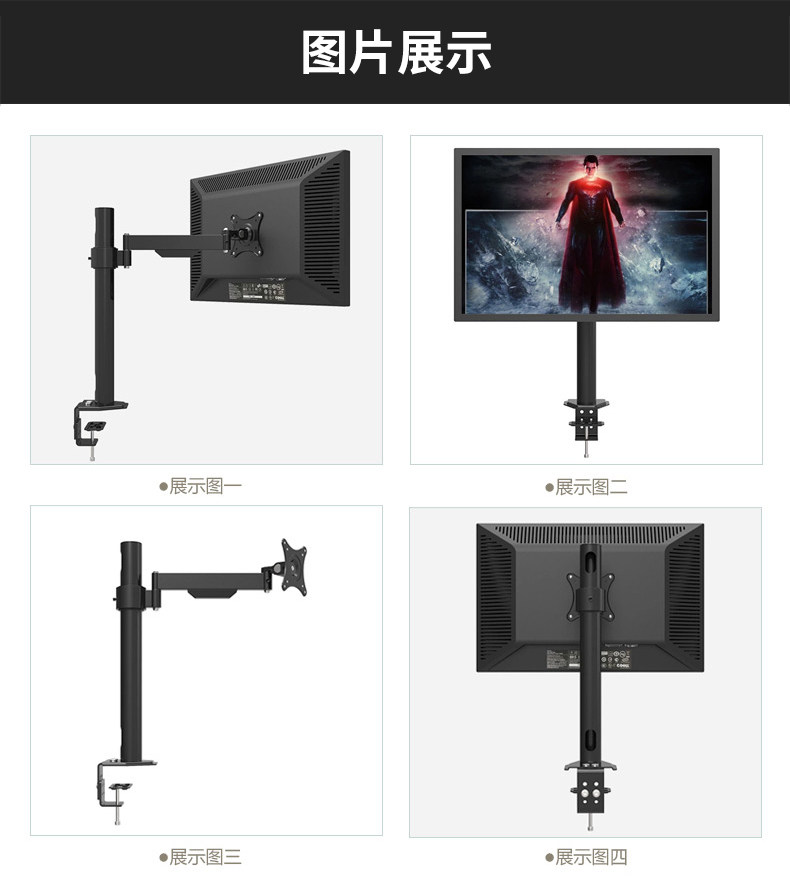 Номер модели: DS-L129B Материал: сталь холодной прокатки SPCC Предлагаемый Размер экрана: 19 "-24" VESA: 75*75 мм/100*100 мм Макс. Загрузка: 10 кг Наклон головы: от-45 градусов до + 45 градусов Поворотная головка: от-90 градусов до + 90 градусов Вращение головы: 360 градусов Шарнирное соединение:-90 градусов до + 90 градусов Высота стойки: 500 мм (диаметр 50 мм) Цвет: черный Установка: настольное зажимное устройство или Крепежное устройство