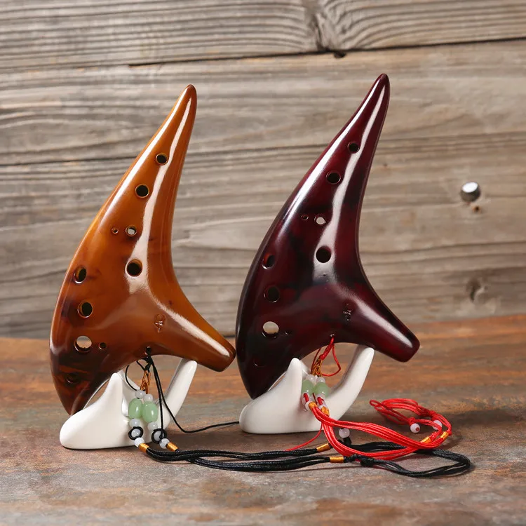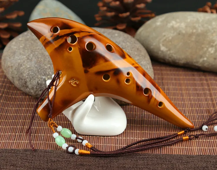 Коричневый альт с ключ окарина 12 отверстий сжигание классический музыкальный инструмент глянцевая яркая глазурь окарина духовой инструмент