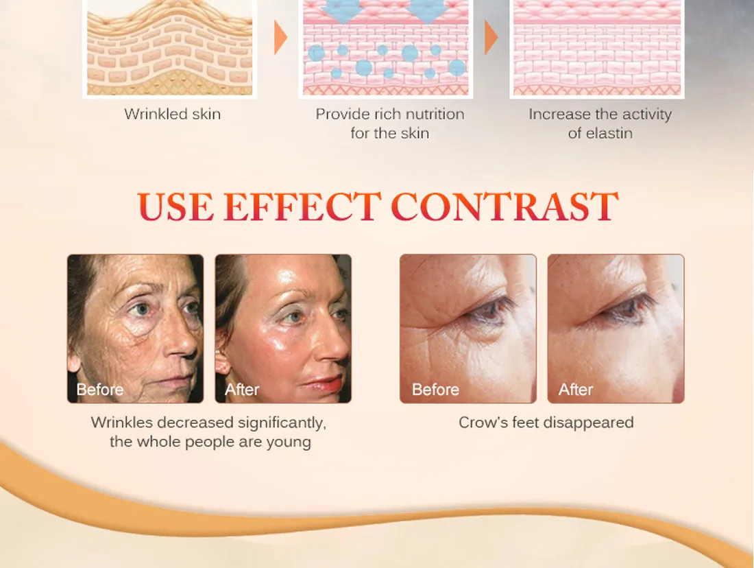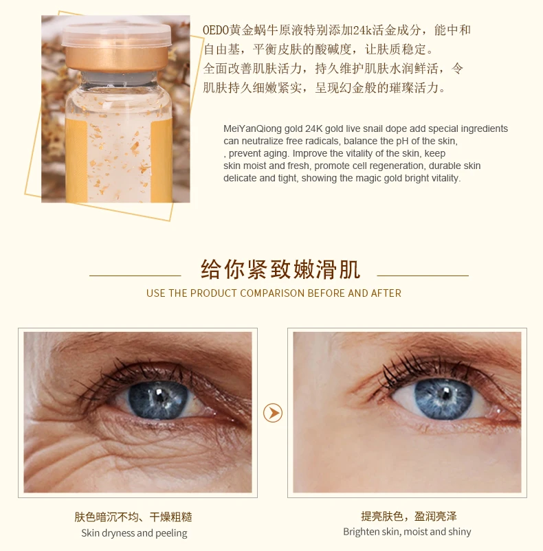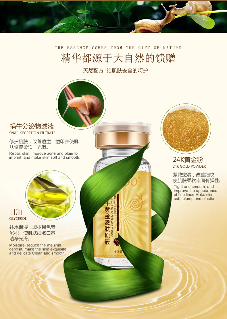 Содержит экстракт слизи улитки и золотой ингредиент, ее текстура мягкая и влажная. Он может дать коже влагу и питание, чтобы помочь питать и увлажнять сухую кожу, а также улучшить сухие морщинки, чтобы сохранить кожу нежной и гладкой для укрепления кожи и сужения пор, которые сохраняют нежную эластичность кожи. Наконец, это делает вас пухленькими, яркими и нежными.