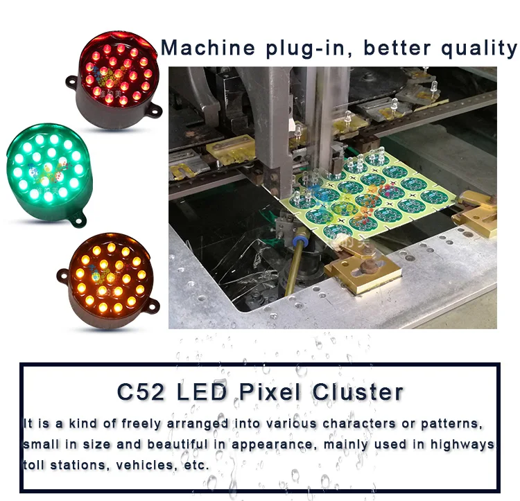 Применение:52 мм светодиодный трафик часто используется для изготовления указателей стрелок для управления транспортными средствами.Светодиодный сигнал дорожного движения имеет три больших преимущества:Во-первых, светодиодный светофор ярче.Во-вторых, светодиодные сигналы светофора длятся годами.В-третьих, светодиодный светофор уменьшает количество энергии от 85 до 90%Лампы накаливания, что означает снижение стоимости около 80%.G