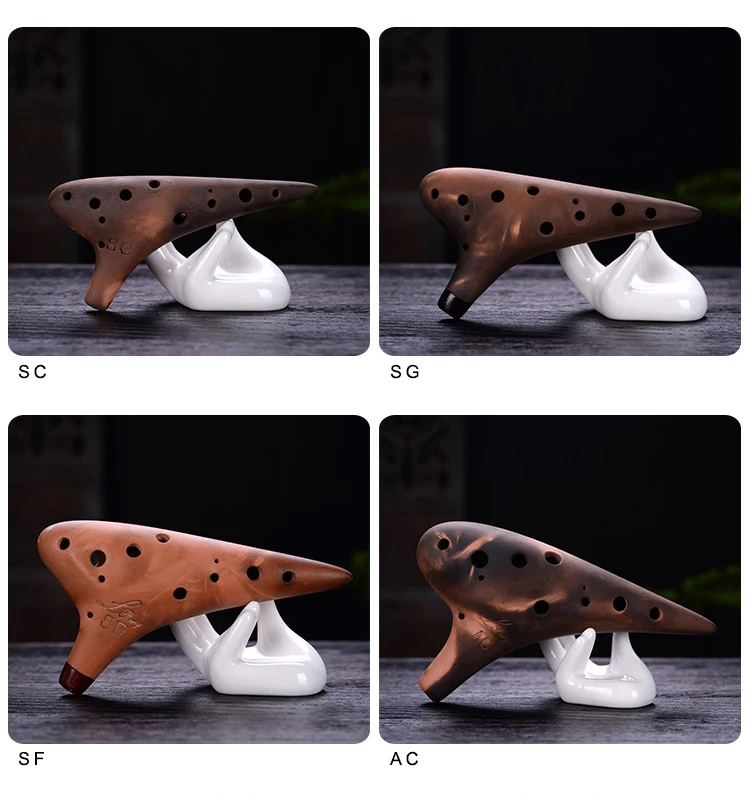Описание продукта: Отверстия: 12 отверстий Шаг: сопрано F Основные Материал: керамика Цвет: коричневый Размер: 16*8 см/6,3*3,1 дюймов Вес: 258 г/0.57lb/9,1 oz Окарина настроена на ключ сопрано Ф. Окарина имеет изысканный ответ на дыхание и кристально чистый тон. Окарина подходит как для начинающих, так и для профессионалов. Защитный мешок мягкий внутри, чтобы защитить окарину от повреждений.
