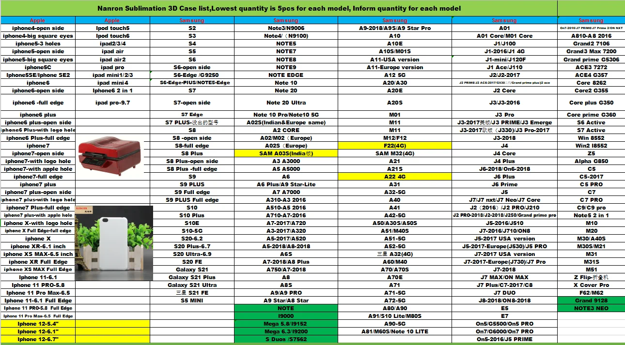 Ниже также находится список металлических форм 3D, все чехол с сублимационным 3D-изображением в 3D-форме.