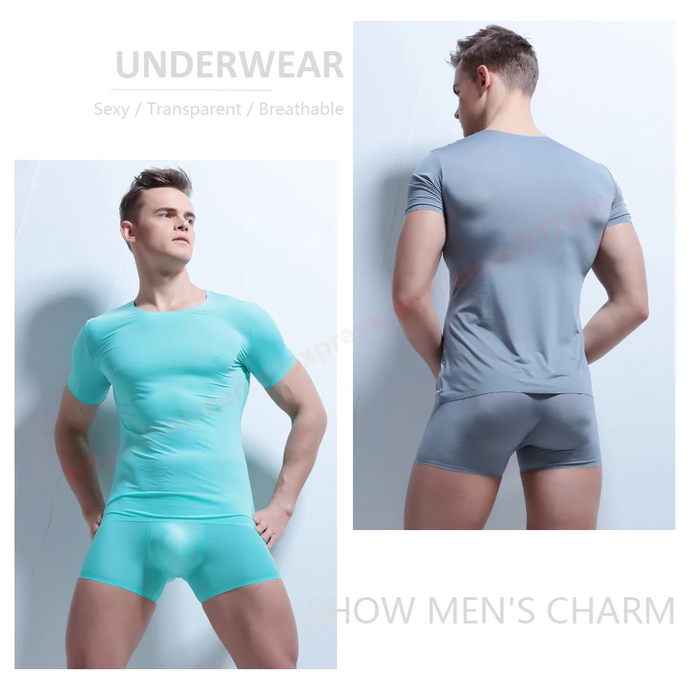 Мужские прозрачные футболки для бодибилдинга, футболки для фитнеса с коротким рукавом, Мужские фуфайки, сексуальные футболки из ледяного шелка, 2019