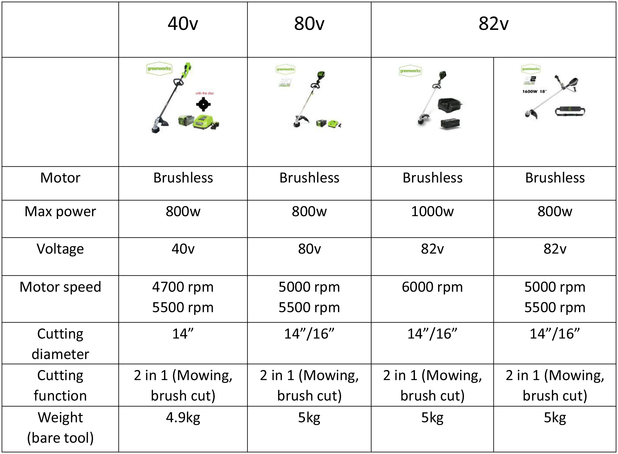 Система GreenWorks Pro 82V предлагает широкий спектр коммерческих инструментов для профессионалов и тех, кто просто хочет больше энергии. Этот 16-дюймовый шпилька беспроводные триммер имеет крепления может шпиндельная головка для универсального использования, совместим с большинством приложение газа. Светильник имеет регулируемый триггер скорости для питания по требованию, 14/16-дюймовый отрезной путь. 080 линия диаметра bump и литой редуктор для долговечности. Предназначен для долговечности и тяжелых работ, он оснащен бесщеточным двигателем, который обеспечивает мощность и производительность газового двигателя 32cc. С дополнительным аккумулятором, теперь вы можете разорвать сорняки по соседству без хлопот газа. Совместимые аккумуляторы в настоящее время включают аккумулятор 5ah (модель GBA82200) и 4ah (модель GBA82400) и быстрое зарядное устройство (модель GCH8240). Аккумулятор 2ah заряжается в течение 30 минут, так что вы можете вернуться к работе и закончить эту работу. Аккумулятор 4ah заряжается в течение 1 часа.