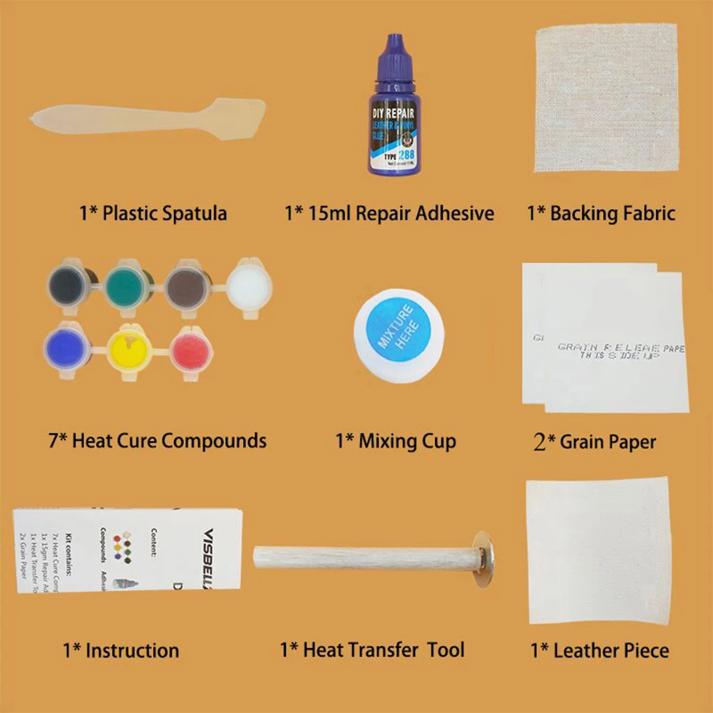 А. Восстановление фар: Комплект для восстановления фар VISBELLA позволяет вашему свету блестеть и восстанавливать пластиковые линзы, включая фары, задние фары, противотуманные и направляющие огни. Восстановив четкость к объективу, производительность фар улучшается и внешний вид транспортного средства, улучшенное звучание. Теперь вы можете произвести профессиональные результаты с набором для восстановления линз фар. Комплект включает в себя все наборы, включая все предметы, необходимые для выполнения задачи, за исключением ленты для маскировки. B. Набор для ремонта кожи Набор для ремонта кожи и винила Visbella, набор для ремонта кожи и винила, очень удобный и легкий, чтобы помочь вам отремонтить любые трещины, порезы, ожоги и слезы на коже и виниловых материалах. Разные цвета и зернистая бумага, подходящая под окружающие материалы, сочетают ремонт с существующим руководством по подбору цветов, помогает определить правильный цвет, соответствующий поврежденной поверхности. Используя все указания, которые включены в комплект, вы можете достичь качественного результата без затрат или опыта профессионального уровня.