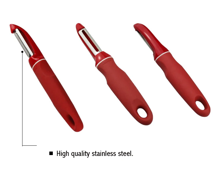Удерживайте устройство для очистки мягких материалов, и вы можете почувствовать разницу. Идеально контурная, мягкая ручка мягко помещается в руку любого размера. Увеличенная ручка означает дополнительную прочность и меньшее напряжение для всех кухонных задач. Мягкая ручка сантопрена безопасна, она не скользит, даже когда влажная. Лезвие из нержавеющей стали.