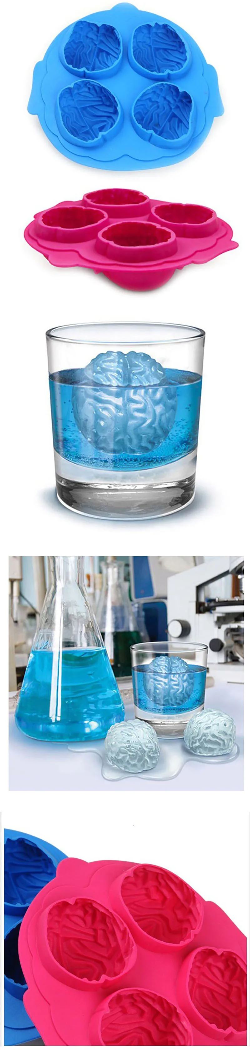 4 ячеек творческий мозг лед решетки Большой Ice Cube Силиконовые формы лоток Фруктовый Лед Куб чайник Бар Кухня Интимные аксессуары DIY коктейльное
