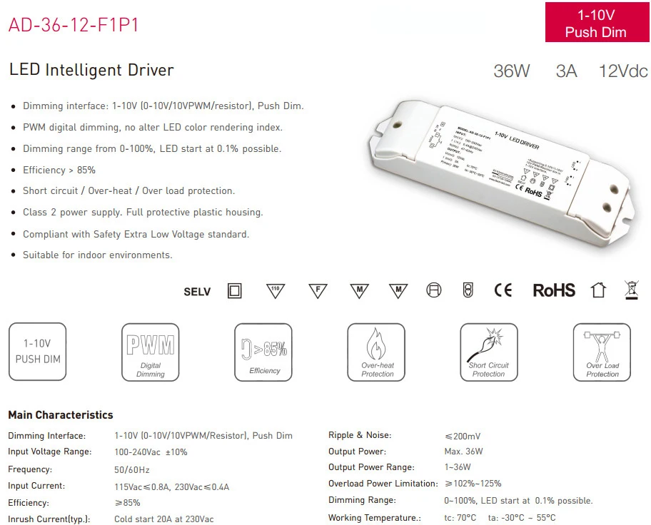 1 шт. AD-36-12-F1P1 светодиодный Диммируемый драйвер