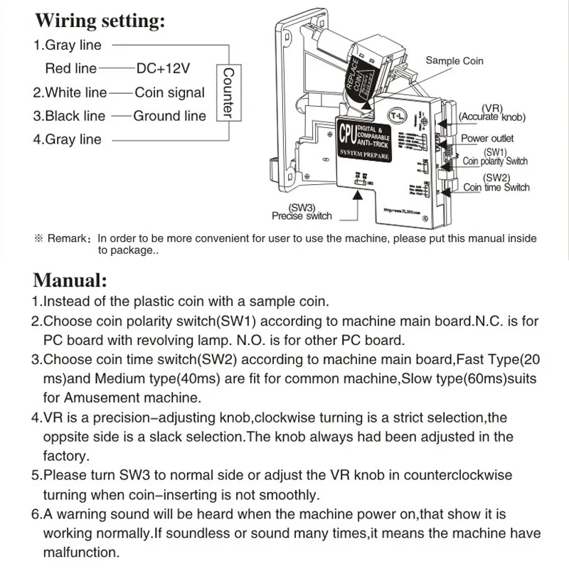 Специальный дизайн: точный/Нормальный переключатель делает монету вставлять более плавно